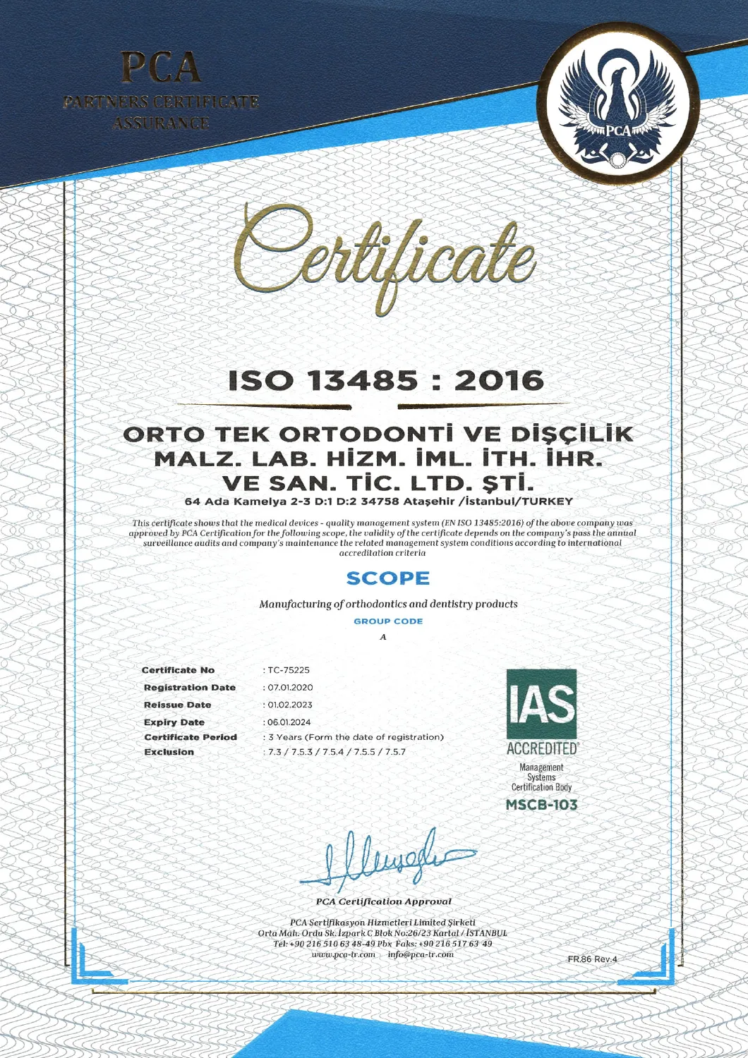 Every dental lab work we deliver is designed and completed by ISO 13485:2016 certified Orto-Tek, marked with CE certification for material quality, and backed by a 5-year warranty for your peace of mind.